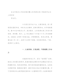 在全市政务公开政务服务暨公共资源交易工作推进和会议上的讲话同志们:今天我们召开这个会,主要目的是,深入贯彻落实国家和省、市有关会议精神,坚持问题导向,补齐短板弱项,集中对全市政务公开、政务服务、公共资源交易工作进行再安排、再部署。刚才,xx同志通报了今年前六个月工作进展