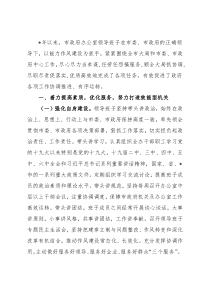 、有序运转。一、着力提高素质,优化服务,努力打造效能型机关(一)强化自身建设。领导班子坚持带头讲政治,始终在政治上、思想上、行动上与市委、市政府保持高度一致,率先领会贯彻市委、市政府各项决策部署,狠抓工作落实,切实担负起政治责任、工作责任。带头讲学习,认真组织全办干部职工学习党的