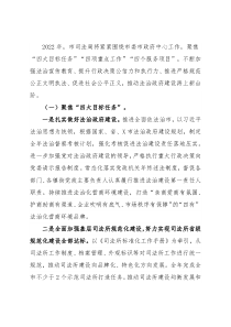 2022年,市司法局将紧紧围绕市委市政府中心工作,聚焦“四大目标任务”“四项重点工作”“四个服务项目”,不断加强法治宣传教育、提升行政决策公信力和执行力、推进严格规范公正文明执法、促进社会公平正义,推动法治政府建设再上新台阶。(一)聚焦“四大目标任务”。一是扎实做好法治政府建设。推进全面依法治市,