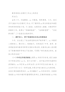 作,我想从“迎接新挑战”、“绘制新蓝图”、“夯实新进程”三个层面谈谈我的思考。一、满怀信心,勇于迎接高站位起点的新挑战今年,在全国上下抗击新冠肺炎的严峻形势下,xx市教育人秉持初心、勠力同心、砥砺前行,仍然收获了中考、高考、素养课堂改革和教育科研等方面的丰硕成果,发展学生核心素养理念下的教