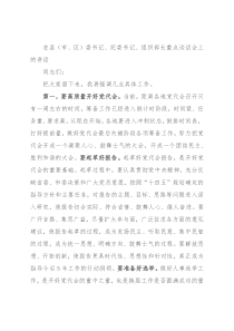 在县(市、区)委书记、纪委书记、组织部长重点谈话会上的讲话同志们:把大家留下来,我再强调几点具体工作。第一,要高质量开好党代会。当前,距离各地党代会召开只有一周左右的时间,筹备工作已经进入倒计时阶段,时间紧、任务重、要求