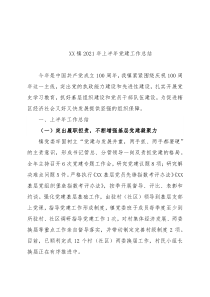 XX镇2021年上半年党建工作总结今年是中国共产党成立100周年,我镇紧紧围绕庆祝100周年这一主线,突出党的执政能力建设和先进性建设,扎实开展党史学习教育,抓好基层组织建设和党员干部队伍建设,为促进辖区经济社会又好又快发展提供坚强的组织保障