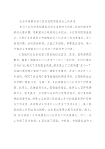 谋篇布局和阶段性工作成果,共同推动全市老旧小区改造工作迎头赶上,真正做到改造工作顺应群众期盼,让发展成果更多惠及老百姓。刚才,XX同志通报了全市城镇老旧小区改造工作进展情况,对下一步工作做了具体安排。X县交流了经验,市财政、市城管执法和X县结合实际做了发言,大家讲的都很好,希望在实际工作