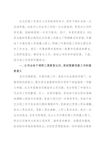 这次巡察工作是对公司党政领导班子、领导干部队伍的一次实地考察,也是对公司各项工作的一次全面检阅,更是对公司科学发展、战略转型的一次有力推动。刚才,市委巡察组长XXX同志就如何配合做好此次巡察工作提出了明确要求和希望,并阐述了开展巡察工作