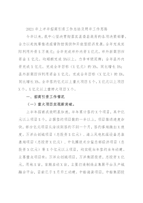 项目X个。一、招商引资工作情况(一)重大项目实现新突破。上半年招商成效明显加速,半年累计签约X个项目,其中亿元以上项目X个,占据签约项目数的一半以上,项目推进速度加快,部分亿元项目从洽谈到签约不到一个