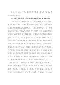 根据会议安排,下面,我就分管工作讲十个方面的意见,请同志们抓好落实。一、强化项目管理,持续增强经济社会高质量发展后劲今年,全县开工建设各类项目72项,要确保项目落地实施,重点在“实”“快”“优”“准”四个方面下功夫,为全县经济社