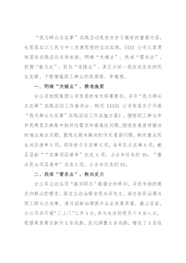 “我为群众办实事”实践活动是党史学习教育的重要内容,也是落实以人民为中心发展思想的生动实践。XXXX公司认真贯彻落实实践活动总体安排,明确“关键点”,找准“需求点”,把握“着力点”,抓住“连接点”,真正办好一批实实在在的民生实事,不断增强职工群众的获得感、