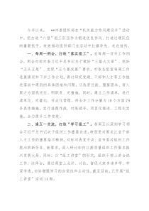 今年以来,**市委组织部在“机关能力作风建设年”活动中,把打造“六型”组工队伍作为锻造优良作风、打造过硬队伍的重要抓手,有效推动组织部门在活动中扛旗争先、走在前列。一、每周一例会,打造“落实组工”。在每周一召开工作例会,例会对标对表习近平总书记关于做好“三篇大文章”、抓好“五头五尾”、实现“五个要