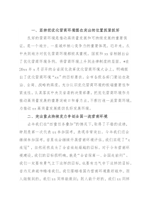 一、坚持把优化营商环境摆在突出的位置抓紧抓好良好的营商环境是推动高质量发展和可持续发展的重要保证,是一个地方、一座城市核心竞争力的重要体现。近年来,从中央到地方对优化营商环境都极其重视。国家和xx省相继出台了优化营商环境条例,将营商环境上升