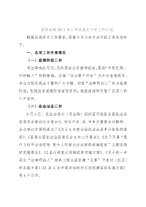 县司法局2021年工作总结及下步工作计划根据县政府办工作要求,现就今年以来司法行政工作总结如下:一、各项工作开展情况(一)疫情防控工作司法局响应号召,及时落实全员接种疫苗,落实“内防反弹,外防输入”防控措施,实施“非必要不外出”及外出备案规定。并