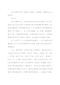 好学习贯彻落实。今天,我们利用一天时间开展了专题研讨。通过这次研讨,大家结合学习和工作实际,谈认识、谈体会、谈落实,进一步统一了思想、坚定了信心、鼓足了干劲,形成了共识。一是深化了认识,统一了思想。通过这次研讨,大家对习
