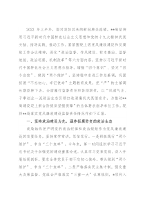 2022年上半年,面对突如其来的新冠肺炎疫情,**局坚持用习近平新时代中国特色社会主义思想和党的十九大精神武装头脑、指导实践、推动工作。紧紧围绕上级党风廉政建设和反腐败工作会议精神,深化“政治监督、作风建设、标本兼治、监督效能、政治