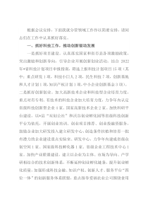 根据会议安排,下面我就分管领域工作作以简要安排,请同志们在工作中认真抓好落实。一、抓好科技工作,推动创新驱动发展一是抓好项目建设。认真落实国家和省市县各项激励政策,突出激励和创新导向,引导企业开展创新创业活动。结合2022年*省科技计划项目申报指南,筛选上报科