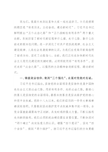 全党全国就能凝聚起守正创新、共克时艰的强大力量,不断从胜利走向新的胜利。我们必须把政治建设摆在首要位置,不断加深对“两个确立”决定性意义的认识,增强“四个意识”、坚定“四个自信”、做到“两个维护”,按习近平总书记指引的方向勇毅前行。做到“三个强化”。即:强化理论武