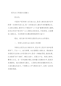 党代会工作报告汇报篇1同志们:中国共产党市第十次代表大会,是进入新世纪我市召开的第一次党的代表大会,是一次承前启后、继往开来的重要会议。大会的主题是:高举邓小平理论和"三个代表"重要思想伟大旗帜,动员全市共产党员和广大人