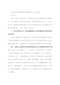 在全县X政府建设动员部署会议上的讲话同志们:刚才,我们收听收看了全市政府系统X政府建设动员部署会议,为节约时间、提高会议效率,我们紧接着召开会议,对全市动员大会精神进行贯彻落实,并对全县政府系统X政府建设工作进行安排部署。下面,我讲三点意见:一、深化思想认识