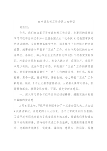 在市委农村工作会议上的讲话同志们:今天,我们在这里召开市委农村工作会议,主要目的是传达学习习近平总书记参加十三届全国人大二次会议X代表团审议时的讲话精神,全面贯彻落实党中央、国务院关于乡村振兴的决策部署,统筹安排今年我市“三农”工作。参加今天会议的有全市各单位、各部门、部分农业