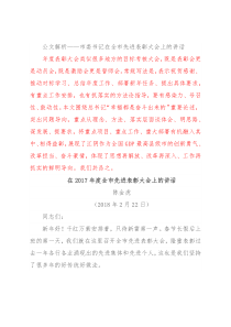 鲜明导向。我们共品之。在2017年度全市先进表彰大会上的讲话陈金虎(2018年2月22日)同志们:新年好!千红万紫安排著,只待新雷第一声。春节长假后上班的第一天,我们就在这里召开全市先进表彰大会,隆重表彰过去一年各行各业涌