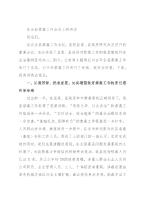 在全县禁毒工作会议上的讲话同志们:这次全县禁毒工作会议,是经县委、县政府研究决定召开的重要会议,充分体现了县委、县政府对禁毒工作的高度重视和依法治毒的坚定决心。刚才,公安局X副局长对去年全县禁毒工作进行了总结,对今年禁毒工作进行了安排,我完全同