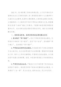 充分发挥全面治党的引领保证作用,推动XX高质量融合发展。一、坚持政治标准,始终把党的政治建设摆在首位1.坚决践行“两个维护”。坚定不移抓好党的政治建设,引导党员干部树牢“四个意识”,坚定“四个自信”,坚决拥护“两个确立”,坚决做到“两个维护”。2.严明政治纪律和政治规矩。引导