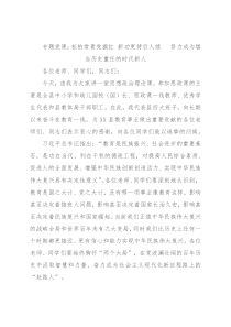 和社会实践相结合,加快推进教育现代化、建设教育强国、办好人民满意的教育,努力培养担当民族复兴大任的时代新人,培养德智体美劳全面发展的社会主义建设者和接班人。二要紧紧抓住思政教师这个“关键少数”。“经师易求,人师难得。”教