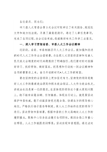 各位委员、同志们:市六届人大常委会第3次会议听取审议了有关报告、规范性文件和地方性法规,开展了满意度测评,通过了人事任免事项,完成了各项议程。在会议结束前,我就做好有关工作讲三点意见。一、深入学习贯彻省委、市委人大工作会议精神近阶段,省委、