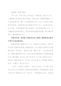 演讲稿:我想对党说百年大党,风华正茂;百年党史,壮阔恢宏。1921年7月,一艘南湖上的红船从革命中驶来,放射出第一缕绚丽的曙光,小小红船承载千钧,播下了中国革命的火种,开启了中国共产党的跨世纪航程,无数革命先烈以强我中华