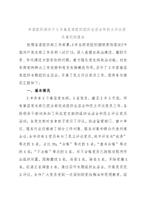 力强化党支部政治功能,切实发挥党的群众工作优势和党员先锋模范作用,召开了X年度基层党组织专题组织生活会,开展了民主评议党员工作。现将有关情况汇报如下:一、基本情况X市共有X个基层党支部,X名党员。截至X年X月底,