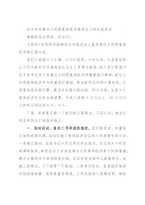 在全市发展壮大村级集体经济推进会上的交流发言尊敬的各位领导、同志们:大家好!非常荣幸能够在全市推进会上就发展壮大村级集体经济做汇报交流。我们×县辖×个乡镇、×个行政村。×年以来,×县委坚持以习近平新时代中国特色社会主义思想为指导,深入学习贯彻习近平总书