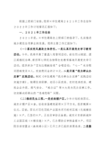 根据上级部门安排,现将×市住建局2021年工作总结和2022年工作计划情况汇报如下:一、2021年工作总结2021年度,×市住建局在上级部门的指导下,扎实推进城乡建设各项事业的发展,现将主要工作汇报如下:(一)落实党风廉政主体责任。一是认真开展党史学习教育活动。今年,我局开展了重温入党誓词活动