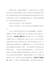席今天会议的有:市XX办机关党总支专职副书记XXX同志。市XX办党组对开好这次民主生活会高度重视,会前制订了周密的工作方案,认真做好会前工作,召开民主生活会准备充分、条件成熟。一是开展了理论学习。组织深入学习了习近平新时代中国特色社会主义思想和党的十九届六中全会、习近平总书记在庆祝中国共产党成立