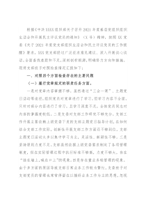 根据《中共XXXX组织部关于召开2021年度基层党组织组织生活会和开展民主评议党员的通知》(X号)精神,按照XX党委《关于2021年度党支部组织生活会和民主评议党员的工作提醒》要求,XXX党支部经过广泛征求意见建议