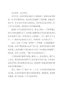 各位老师、各位同学:多年以后,当我回想起2022年上海的春天,曾经有60所高校、70多万高校学生,他们的生活被摁下了暂停键,我就会记得今天,作为30多年前毕业的校友,有幸来见证各位同学,终于可以走出校园,虽然我们之间还隔着屏幕。路遥在《平凡的世界》的开头,是这么写的——严寒