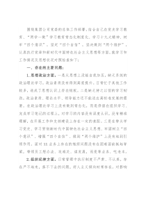 围绕集团公司党委的总体工作部署,结合自己在党史学习教育、“两学一做”学习教育常态化制度化、学习十九大精神、树牢“四个意识”,坚定“四个自信”,坚决做到“两个维护”,认真执行党章和新时代中国特色社会主义思想等方面,就学习和工作