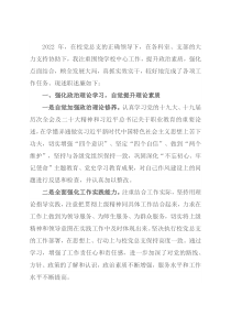 领导指示,反馈各种信息,保证全校上下政令畅通,工作运转高效。三是做好理论学习工作。贯彻落实党的教育方针,巩固深化“不忘初心、牢记使命”主题教育、党史学习教育成果,持续抓好教职工的思想政治教育,组织校领导、
