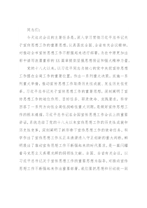 务、面临的风险挑战,正视存在的问题和困难,进一步提升站位、强化担当,聚焦聚力、善作善成,真正让宣传思想工作顺应新时代、跟上新时代、引领新时代,在新的起点上不断开创宣传思想工作新局面。二、咬定目标任务,切实抓好推动宣传思想工作