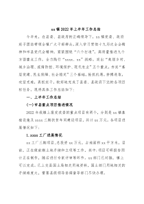 xx镇2022年上半年工作总结今年来,在县委、县政府的正确领导下,xx镇党委、政府班子团结带领全镇广大干部群众,深入学习贯彻十九历次全会精神和市县党代会精神,紧紧围绕“六个打造”,高质量推进九个方面重点工作,全力践行“xxxx、xx”战略,突出“美丽乡村、城乡治理、疫情防控、环境保护、现代农