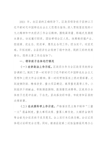 2021年,在区委的正确领导下,区政府领导班子坚持以习近平新时代中国特色社会主义思想为指导,深入贯彻落实党的十九大精神和中央经济工作会议精神,围绕高质量、跨越式发展根本要求,切实履行职责,团结带领全区人民,