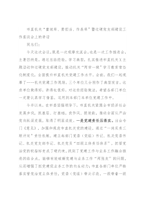 习教育、过硬支部建设等工作进行集中督导。希望各部门各单位切实重视起来,以整改问题的实际行动,推动整体工作实现大幅提升。三要抓好红旗帮带,发挥示范效应。典型引路、抓点带面是重要的工作方法,也是提升党建工作水平的有效途径。今年,市委在全市遴选命名了X个红旗党支部,其中市直机关有X个;同时,市直机关工