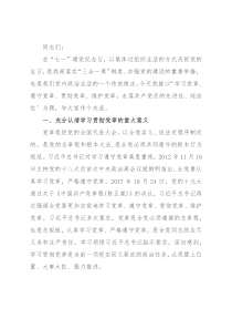0月24曰,党的十九大通过关于《中国共产党章程(修正案)》的决议,习近平总书记再次强调全党要更加自觉地学习党章、遵守党章、贯彻党章、维护党章。习近平总书记多次要求,党章是全党必须遵循的总章程,也是总规矩,认真学习党章、严格遵守党