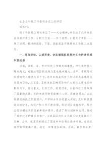 在全县科技工作推进会议上的讲话同志们:刚才科技局X局长传达了……大会精神,并总结了近年来我县开展科技工作;X副主任就……作了说明。X就关于申报……作了说明。都讲的很好,下面,我就我县开展科技工作提三点意见。一、