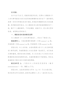XX党委:XX年XX月XX日,我接到党组织信息,反馈本人填报的《个人有关事项报告》信息与组织核查掌握的信息存在不一致的情况。我第一时间对所填信息进行复核,发现组织掌握的信息为真实数据。我郑重向组织表态,本人填报信息与组织核