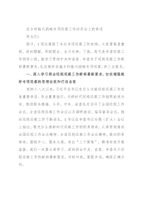 作指明前进方向、提供根本遵循。今年,中央、省委先后召开了全国巡视工作会议、全省巡视巡察工作会议以及调研座谈、指导督导会议,推动巡视巡察工作不断深化。X书记在市委书记专题(扩大)会议上指出,要充分认清新时代巡察工作的职责使命,认真贯