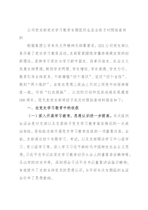 公司党支部党史学习教育专题组织生活会班子对照检查材料根据集团公司有关文件精神及部署要求,XXX公司党支部认真开展了党史学习教育活动,支部紧紧围绕学懂弄通做实党的创新理论,坚持学习党史与学习新中国史、改革开放史、社会主义发展史相贯通,做到学史明理、学史增信、