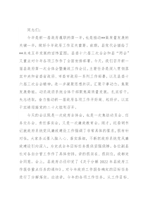 建设引向深入,为完成全年目标任务提供坚强保障。各位副县长对各自分管工作作了具体安排,讲的很实在、很到位,我都完全同意。会上,县政府办还印发了《关于分解2022年县政府工作报告重点任务的通知》,对今年政府工作报告确定的目标任务进行了分解落实。应该讲,今年的各项工作任务,从工作目标、工作