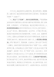 导、加强组织建设、提升组织力的重要抓手。整合县直机关部门资源,组建巡回宣讲队伍,推行“每日一学、每周一课、每月一考、每季一查”的“四个一”学习机制,鼓励引导党员干部深学实做,着力抓重点、强弱项、补短板。三、创新“三微模式”,深化党员教育成果。注重用好红色资源,