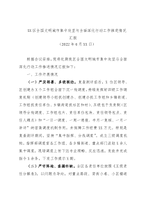 XX区全国文明城市集中攻坚与全面深化行动工作推进情况汇报(2022年6月XX日)根据会议安排,现将近期我区全国文明城市集中攻坚与全面深化行动工作推进情况汇报如下:一、工作开展情况(一)严实部署、多级联动。复查测评前
