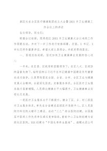 副区长在全区医疗健康集团成立大会暨2021年卫生健康工作会议上的讲话各位领导,同志们:根据会议安排,现将我区20XX年卫生健康大会以来的工作作简要总结,并对下一步工作进行安排部署。后面,X书记、X市长还将作重要讲话,希望大家认真领会,并抓好贯彻落实。一、客观总结成绩,坚定加快卫生健康事