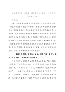 党史教育党课:重温党史辉煌坚定初心使命力行担当作为贡献X力量同志们:2021年是中国共产党成立百年华诞。作为一名党员干部,以什么样状态修好党史“必修课”、拿什么样的业绩来体现使命担当、迎接建党百年,是在座每名党员干部必须思考的内容。在我看来,党员干部要在重温党史辉