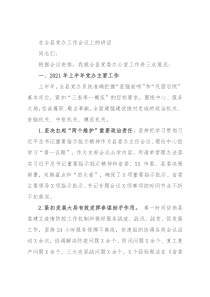 在全县党办工作会议上的讲话同志们:根据会议安排,我就全县党委办公室工作讲三点意见:一、2021年上半年党办主要工作上半年,全县党办系统准确把握“坚强前哨”和“巩固后院”基本定位,紧扣“三表率一模范”的目标要求,围绕中心、服务大局,忠诚履职、敬业奉献,全